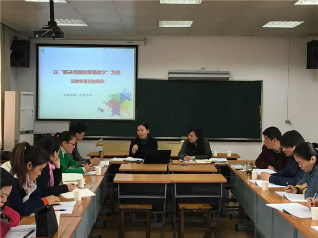 最后,马校长就两节课,提出了改进意见。同时,马校长还结合两节课,进行了《以解决问题的策略教学为例——谈小学生数学素养培养》的讲座,解读了核心素养、数学核心素养等概念,并就策略教学的目标定位、设计要点等方面谈了自己的观点。在场老师对马校长的分析频频点头,受益匪浅。
