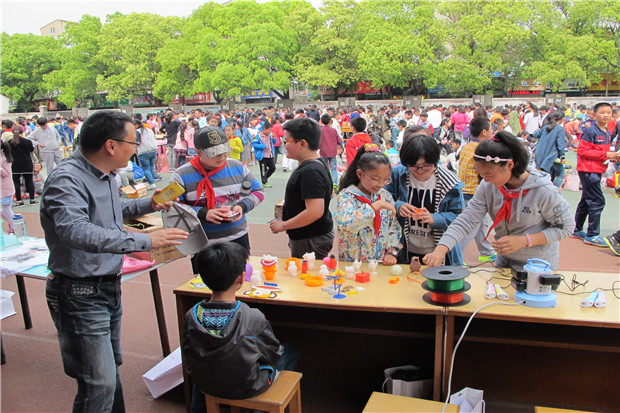 首先,工作室成员观摩了二实小的跳蚤市场活动。小小的操场上,各个班级提前将自己的“交易场所”布置好,有的打上响亮的口号,有的还赠送精美礼品,真是各出奇招。别出心裁的手绘文化衫、技术引领的3D打印、巧手制作的工艺品等,让人目不暇接。操场上沸沸扬扬的叫卖声此起彼伏,从孩子们兴致勃勃的身影中工作室成员感受孩子们的快乐。