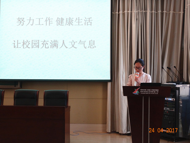 暖风拂面,幸福漾心田。4月24日下午4点10分,香槟湖小学全体教师在报告厅开展以“努力工作 健康生活 让校园充满人文气息”为主题的教师培训活动,会议主要分为三个板块进行。