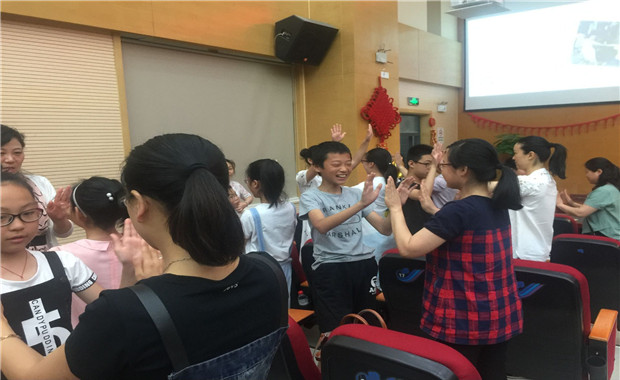 赵教授是江苏理工学院心理健康教育中心主任,国家二级心理咨询师,中国心理学会临床与咨询心理学会注册心理师。她有着二十多年的心理咨询经验,她今天的心理辅导活动通过特点剖析、亲子游戏、感受分享等丰富的形式,走进了在场每个人的心灵。首先赵教授分别从“小升初心理特点”,“小升初常见适应问题”,“掌握沟通之道”等几方面从理论层面分析学生心理,为家长解惑支招。接着,更是精心准备了四个亲子互动游戏,大大提升了家长与孩子的感情。“镜子游戏”训练亲子默契度,“对牛弹琴”让彼此体会到如果交谈时不尊重自己是什么感受,心理剧表演则让每个人都感受到了“说你”和“说我”的区别,最后“爱的表白”更是让孩子和父母敞开心扉,表达出对彼此的深情。