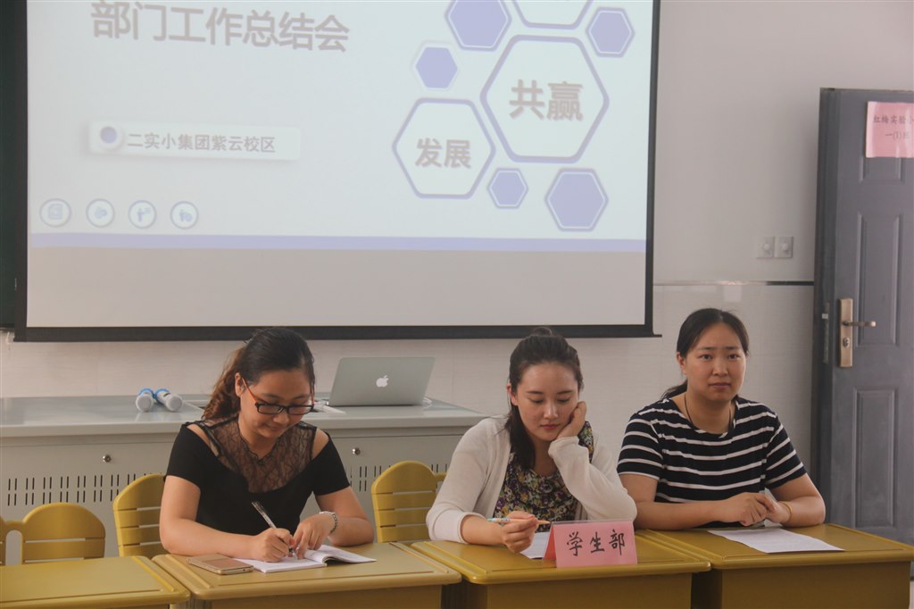 为了提高紫云部门工作质量,促进各项工作的顺利开展,6月28日下午,紫云小学部门总结会如期举行,全体教师参加,并参与互动交流。会议由郭校长主持,课程部、学生部和后勤部结合各部门的工作计划分别进行了汇报交流。