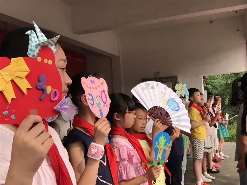 中年级的花儿与少年们,用无限的创意和灵巧的双手创作了各式各样的小扇子,有围绕校庆主题抒发爱校深情的、也有围绕嬉夏主题展现清凉一夏的,颜色绚丽、材质丰富,令人眼花缭乱。展示过程中,在明快的节奏中,孩子们自信大方地给大家秀出了美美的扇面,送来了阵阵清凉。