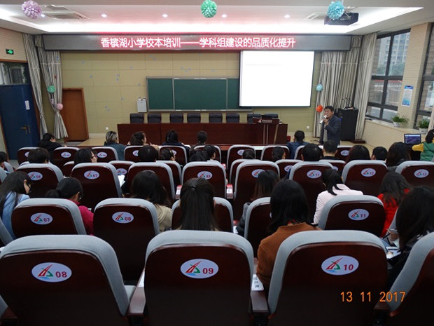 11月13日下午四点十分,香槟湖小学全体教师齐聚报告厅参加校本培训,本次培训特邀了新北区教研室万荣庆主任为老师们作了题为《学科教研组、备课组建设规范》的主题讲座。