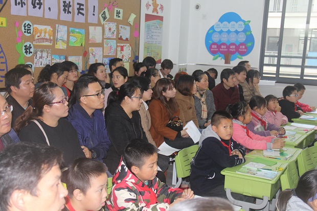 正是家长的认真听课,也促进了师生的积极投入:老师们个个精神饱满,面带微笑,教学极富表现力与感染力,完美呈现丰富的课堂内容;孩子们专心致志、思维活跃,精彩问答不绝于耳,优秀表现令人啧啧赞叹。而因雨只能在室内开展的大课间活动,也在班主任的组织下,通过“露一手乐淘淘”微活动,展示了孩子们精心准备的小节目,有令人捧腹大笑的故事,有悦耳动人的歌舞,有强身健体的武术……家长们看得赞叹不已。