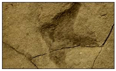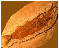2、 观察化石,丰富对化石的感性认识。首先利用网络信息平台让学生浏览大量的动植物化石图片,学生感知什么是化石,激发学生对化石产生兴趣,形成探究欲望。为了培养学生的观察和想象能力,陈老师特意安排了容易观察,但特点又非常鲜明的化石图例。如图,《鱼吃鱼化石》 如图,《恐龙脚印化石》