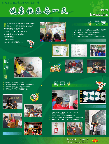 根据《关于组织参加"江苏省首届学校健康教育宣传周"活动的通知》(常教体〔2003〕21号文)精神,我校积极参加本次活动。本次健康教育展板评比活动共评出一等奖8个、二等奖17个。我校送评的《健康快乐每一天》展板获奖一等奖。