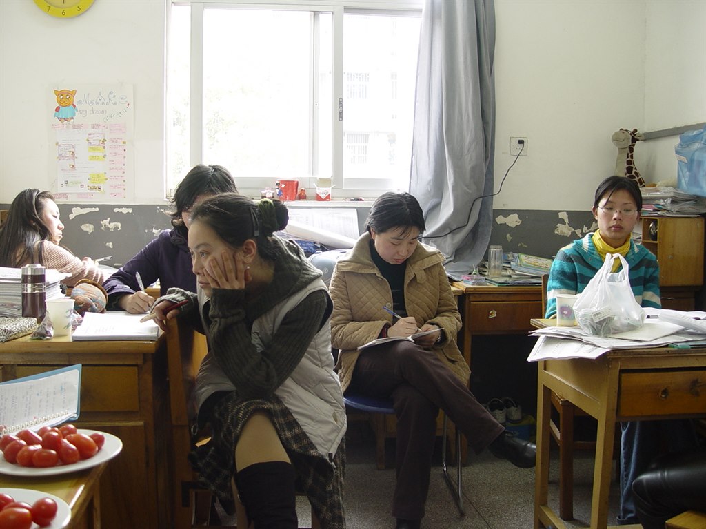 胡老师很欣赏这种日常化的校际教学研讨,提倡我们通过经常开展这样的研讨互相学习互相促进。在胡老师的组织下,办公室里很快呈现出了你一言我一语的热烈发言场面。