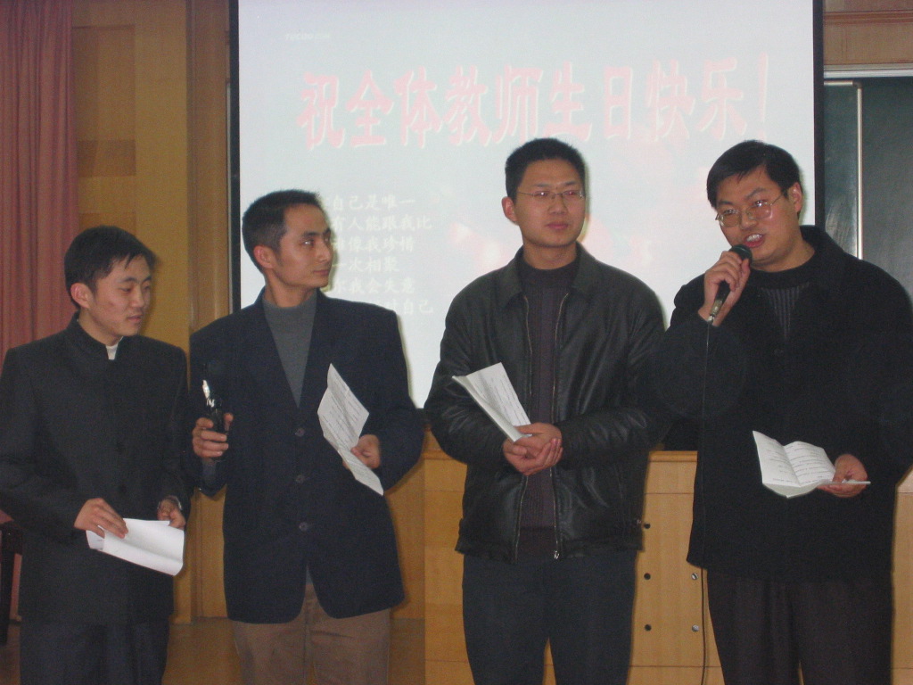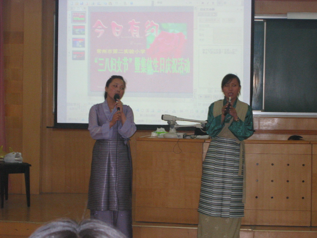 说它特殊,还在于这不仅是一次庆祝活动,还是一次才艺展示活动:英语老师石亚静的吉他伴奏,让我们在赞叹之余都有想拜她为师的冲动;主持人潘亚清和潘银婷老师的机智和幽默,让活动现场的笑声、掌声此起彼伏;而西藏客人老师优美、厚重的歌声,更让我们领略了来自雪域高原的天籁之音。