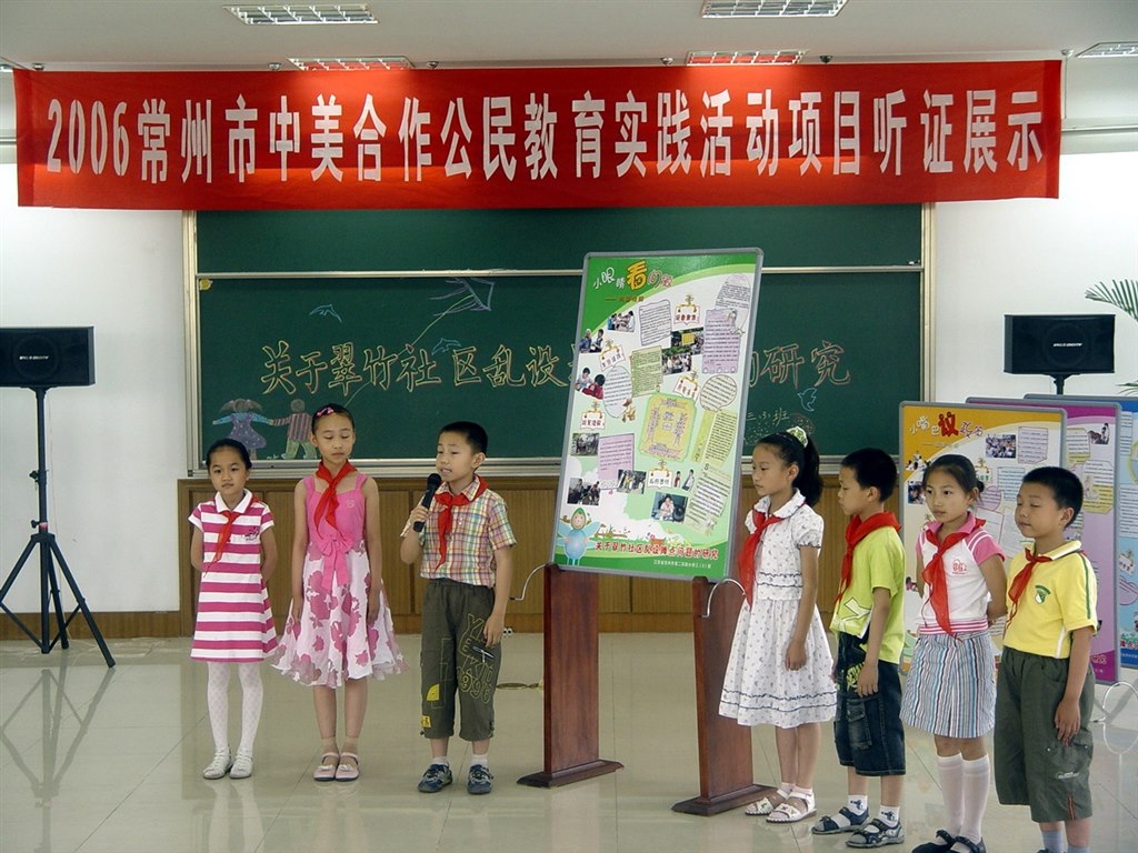 中美合作公民教育实践活动是由省教育厅牵头,与美国公民教育中心合作的研究项目。从2005年9月起,全市共有17所学校,42个班级,45名项目老师,2200名学生参与此项目。我校作为市首批公民教育项目实验学校,拥有三(3)、三(5)、四(3)三个实验班级。