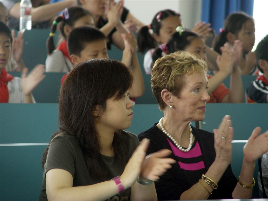 美国公民教育中心主任奎克利先生及夫人等项目专家对孩子们的表现赞赏有加,频频举起他的相机摄下展示活动的精彩瞬间;省教育厅周稽裘副厅长则高度评价了孩子们天真可爱又富有社会责任感!