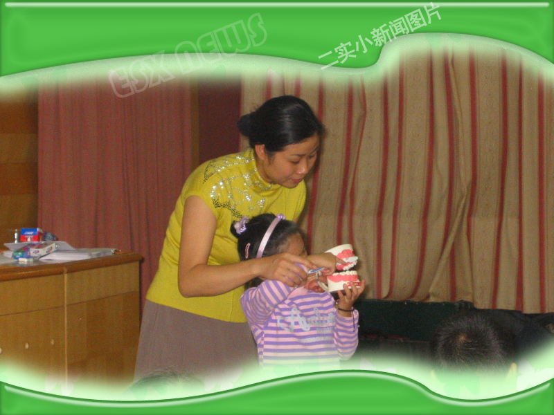 课堂上居老师带领小朋友们围绕“保护我们的牙齿”为主题,通过观看录像、观察实验、小组辩论、学生示范等形式,从小朋友兴趣、认知水平出发,让学生感受龋齿的危害以及“爱牙护牙”的重要性。并通过有效的活动让学生都掌握了正确的刷牙方法,树立个人卫生的良好行为意识。小朋友们的积极参与和富有童趣的回答,不时引来与会教师们的笑声以及思索。观摩课结束后,与会领导和教师们还一起就这堂课以及我市的健康教育工作展开了研讨。一致认为这堂观摩课 “精彩、生动、有效”,值得学习和借鉴。另外,本次观摩活动,不仅给外校的教师以启迪,更为促进我校的健康教育工作提供了一次契机。我们二实小将继续围绕《体卫工作两个条例》积极开展有效的健康教育工作,为学生健康快乐的成长而不懈地努力。