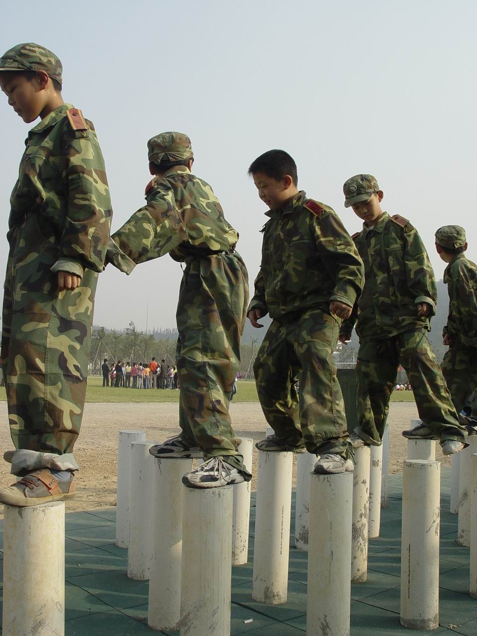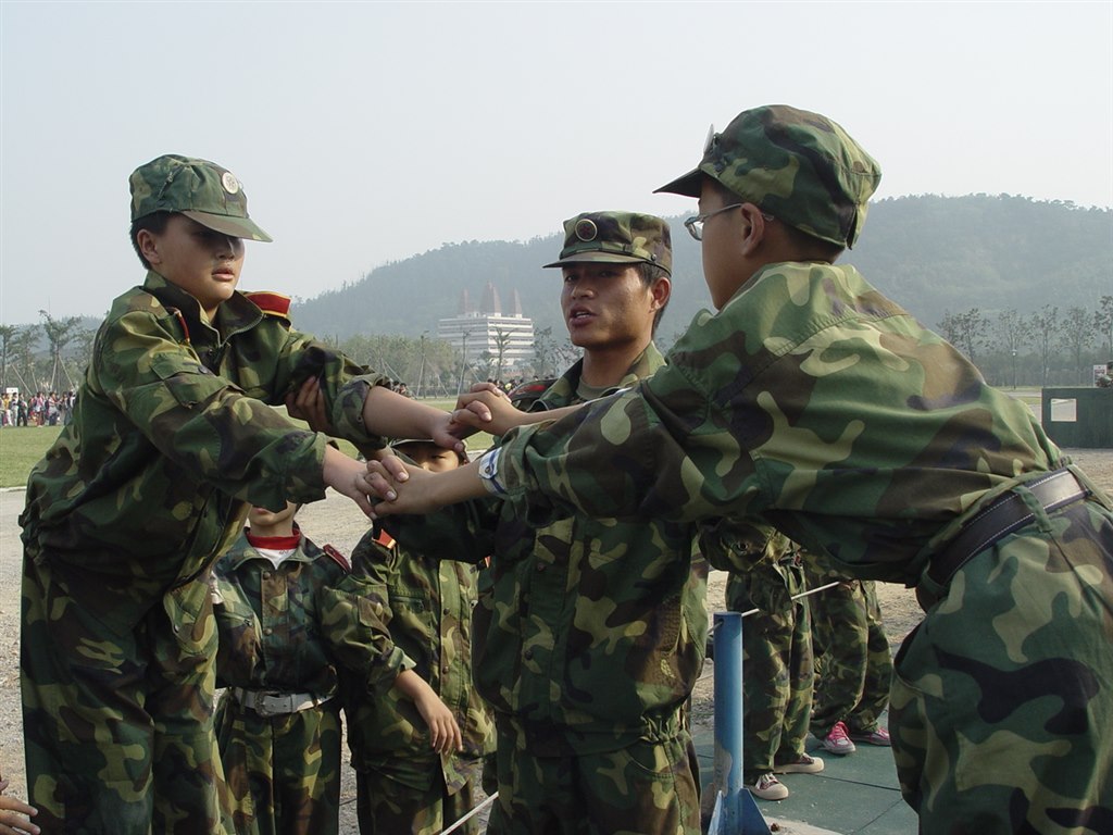 踏着金秋的晨雾,迎着飒爽的秋风, 怀着对军营生活的无比向往,我校于11月1日组织五、六年级552名学生来到常州国防园进行社会实践活动。在3天的军营生活中,同学们亲身体验了单兵队列、整理内务、野营拉练等军事训练,参观了高炮库、射击馆,观看了军事题材影片,开展了丰富多彩的拓展训练,在结营式上还进行了个人技能和集体会操比赛。同学们以高昂的斗志,饱满的热情,顽强的意志投入到军训中,圆满完成了任务。