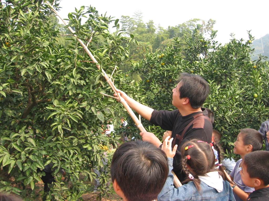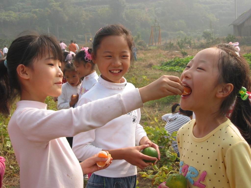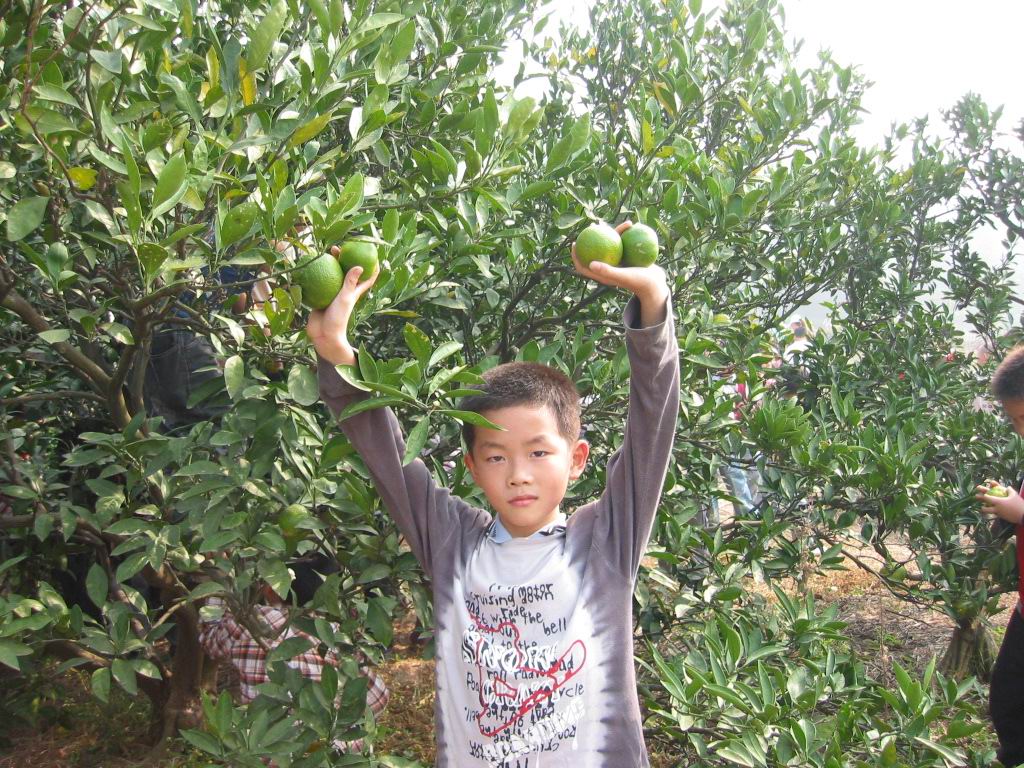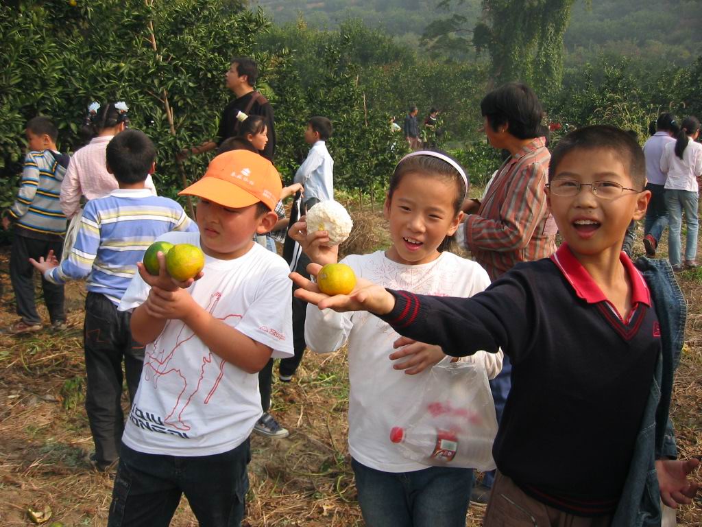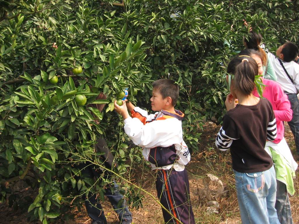 结束了野餐,不知疲倦的孩子们在草地上尽情地嬉戏,但一听说接着要去桔园采桔,又欢呼着列队整装待发。走在尘土飞扬的小道上,满心憧憬着,快乐地议论着,桔园的棵棵桔树一定挂满金黄的小灯笼。想起橘子甜中带酸的味道,忍不住馋涎欲滴。然而,等掰开密密的树缝钻进桔园,大家见到的却是绿色枝叶间躲藏着的一个个小绿灯笼。顾不了许多了,先下手为强,馋极了的孩子们急忙忙地把稍稍带点黄的桔子采了下来……桔子谁都吃过,可吃自己亲手采的桔子,有许多人还是头一回,所以,哪怕是酸得倒牙也舍不得吐出来。回去的路上,人人手里都拿了一小袋桔子,也算是满载而归了。