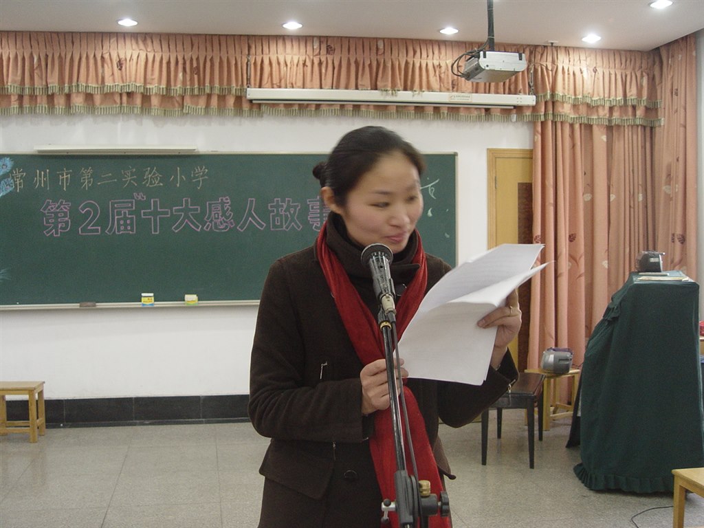 校园十大感人故事的评选在二实小这已是第二届了,一月初,通过各部门的推荐和自我申报,共有16个集体和个人参加了本次的评选。经过两周的准备,各参评者用文字记录下自己的感人故事,首先公布在学校内网上,供大家传阅。又经过一周的酝酿,在今天,来深情讲述这些感动。