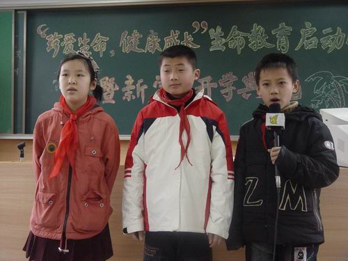 3月1 日是全市各中小学开学的日子,我校全体师生利用新学期开学典礼,举行了“珍爱生命 健康成长”生命教育启动仪式。由于天气原因,原定在室外举行的仪式改在了室内,学校新竹电视台的直播室与各班级观看的电视同步进行。全校师生演唱完国歌和校歌后,各年级学生代表表达了本年龄段学生对生命的理解:一、二年级的小朋友从父母那里了解到自己出生的过程,想说“妈妈真了不起”“我们长大不容易”;三、四年级的同学感受到生命来之不易,长大的过程也是艰辛的,这里有爸爸妈妈曾为之付出的努力和辛劳,也有老师对他们无微不至的关怀和教导,所以要说:“爸爸妈妈我爱你!”“老师老师我爱你!”对于五、六年级同学,他们要说的是“珍惜时间就是珍爱生命”“勇于承担责任,学会奉献爱心”。孩子们用生命的体悟诠释着生命的美丽,成长的激情与渴望在他们心中升腾。