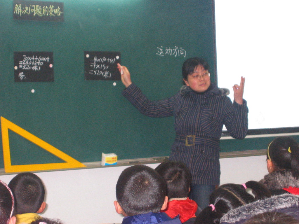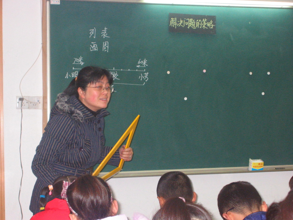 活动分两个阶段进行,在第一阶段,二实小的唐琴珠老师向大家开放了一节随堂课——四下《解决问题的策略》,由此拉开了工作室07年研讨目标之一——“在深化点研究的基础上进入线研究”的序幕。在06年,工作室采用边实践、边总结、边提炼的方式,已经成功地突破“点”研究——围绕典型个案进行实践探索。今年将以“点”带“线”,在“线研究”层面作重点研讨,围绕某个知识体系作系统研究,采用多头并进的方式,在“解决问题的策略”“统计”“乘法”等专题开展结构梳理、教材研读与实践重建。