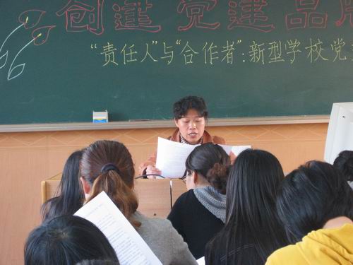 常州市第二实验小学于4月30日下午召开了党员大会,会议的主题围绕创党建品牌——“‘责任人’与‘合作者’,新型学校党支部角色形象”展开,会上王冬娟书记提出了在学校转型性变革中党支部应实现从单一角色向双重角色的转换——即实现“责任人”与“合作者”的角色理想,并以此作为党组织品牌建设的内容。努力使党支部“责任人”与“合作者”的品牌形象成为学校转型性变革中一面“鲜艳的旗帜”、一个“战斗的堡垒”!