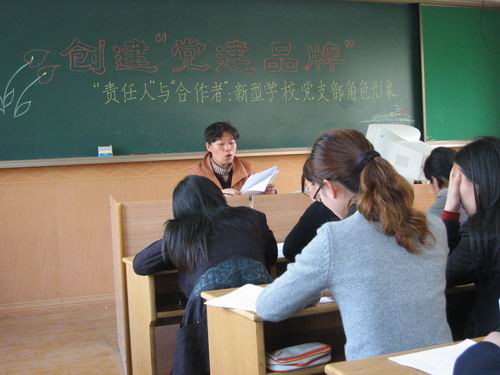 在今天的会议上,学校党支部还邀请了入党积极分子参加,把做好入党积极分子的培养教育工作作为学校党建的一项重要工作,使入党积极分子、团员系统地接受入党前的教育和熏陶,更好地端正入党动机。会后这些同志很有感触地说:参加党员会议,使我们进一步加深了对“党的先进性”的认识,进一步端正了入党动机,提高了入党的积极性。