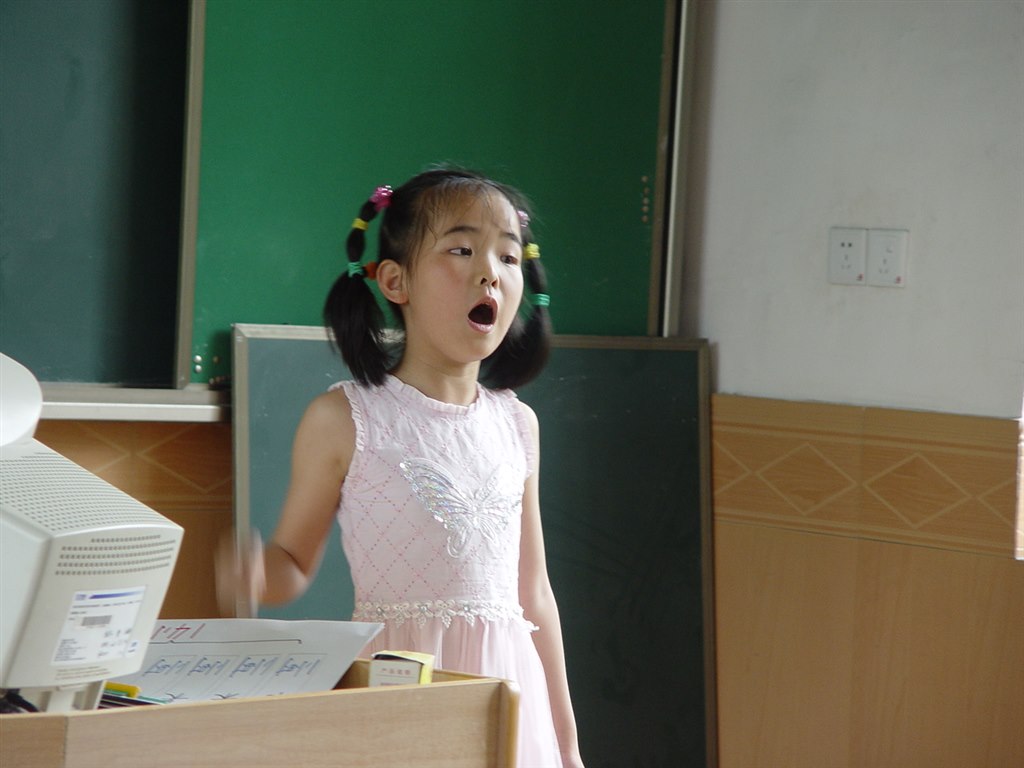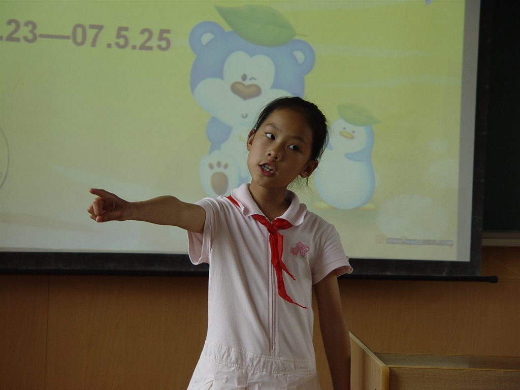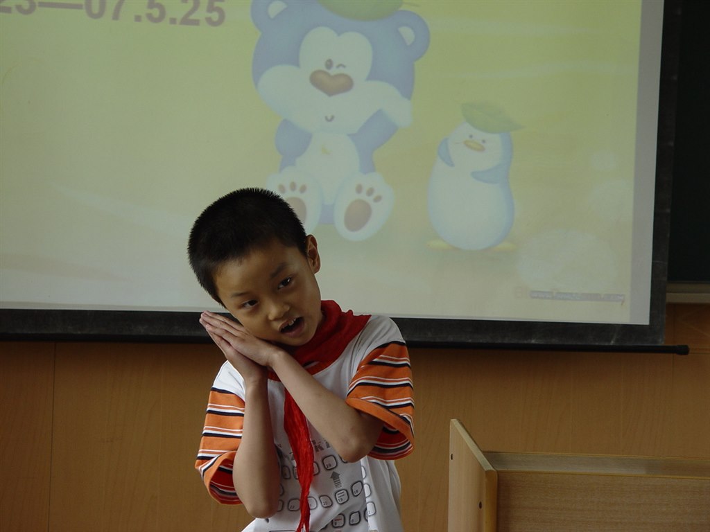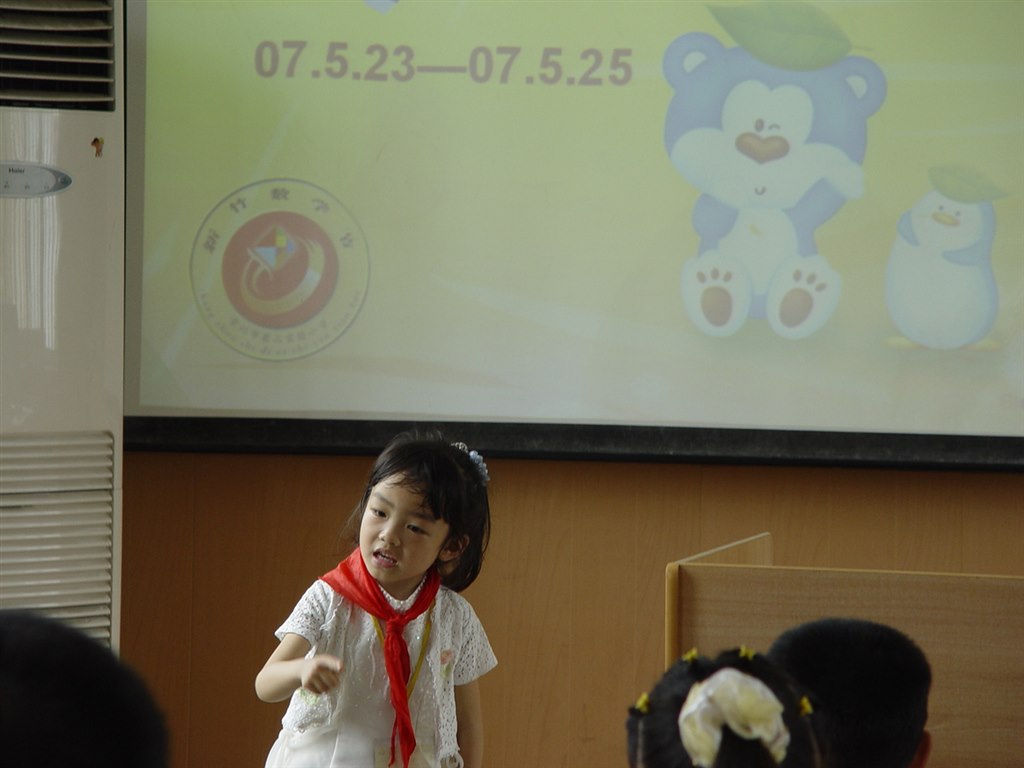 这些一、二年级的小不点们虽然充满稚气,但他们落落大方,神态自然,毫不怯场,甚至有个小选手等不及主持人介绍,便自己跑上台去表演起来了!他们表情生动,把故事演绎得惟妙惟肖:看他们时而大笑,时而皱眉,一会是小姑娘,一会是老奶奶,一会是小熊,一会又成了狐狸。他们的故事取材广泛,又在浅显的故事中为我们展现了经典的数学奥秘: “朝三暮四”的故事引我们探究成语与数学间的联系;“0是怎么来的”为我们讲述了一段数学史话;“华罗庚的故事”激励我们这些家乡后代努力奋进;“小松鼠的星期天”中运用的可是统筹方法这一深奥原理;而“梦游零王国”则在跷跷板游戏中解释了零的性质……
