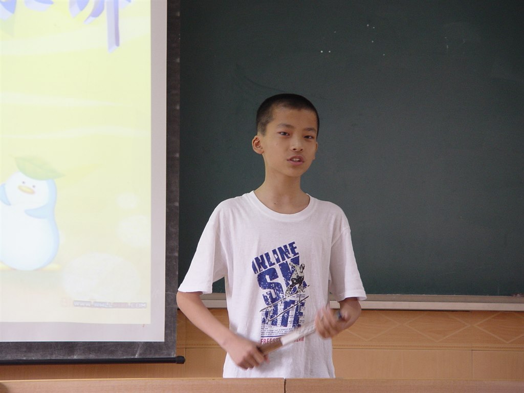 亲临比赛现场,五、六年级同学可谓博采众长,各具风姿:王寒炀、王梦贇同学用自己原创的故事来参赛,曲折生动,令人佩服他们的多才多艺;冯逸飞和都盛同学用双簧的形式来演绎数学故事,讲者抑扬顿挫,演者手舞足蹈,虽未做到天衣无缝,却也用这一传统的曲艺形式播撒了数学的种子;柏钧文同学一把折扇作道具,好一派文士风范,谈笑间数王国的敌人灰飞烟灭……更不谈高年级故事中所含的数学知识范围更广,思考更深了,“分数、乘方、环形面积、百分率……”这是一场听觉大餐,更是一场数学总汇。