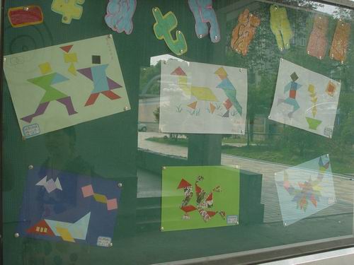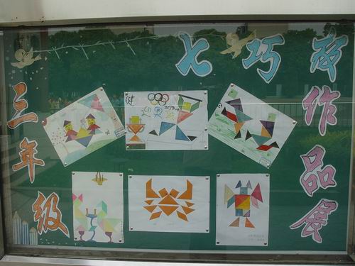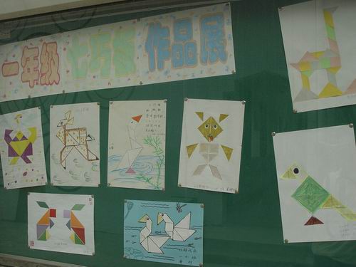 近日,随着校首届数学节的开幕,数学节的静态活动——“奇思妙想七巧板”闪亮登场了。1~3年级的学生兴致勃勃地参与了这次活动,他们利用星期天的时间,充分展开自己想象的翅膀,发挥自己的聪明才智,构图、粘贴、涂上漂亮的色彩,在孩子们的不懈努力和家长的共同大力支持下,历时两周,一幅幅新颖、别致、富有创意的作品诞生了。