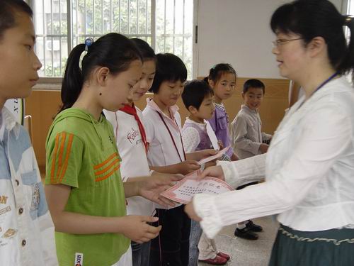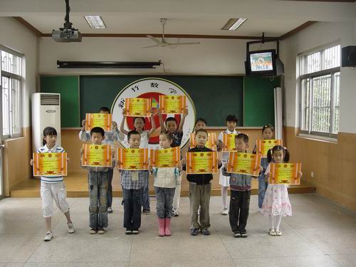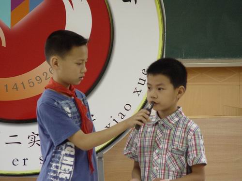 闭幕式上,学校领导为在数学节各项比赛中获奖的学生和班级颁发了奖状。在节徽征集中荣获最佳创意奖的三(4)班荆紫洋同学还为大家介绍了节徽设计的思想,从构思巧妙变化无穷的七巧板讲到古代数学家祖冲之的圆周率,使大家受到了启发,增长了智慧。三(6)班徐源宁同学作为讲故事比赛一等奖获得者的代表为全校师生绘声绘色地讲述了一个数学故事“找亲戚”。同学们从她的故事中领悟到:留心观察,仔细寻找,生活中处处有数学,分析概括,总结归纳,世界万物都有他内在的规则。一(3)班戎腾小朋友则为大家朗诵了一首自己为七巧板拼图创作的小诗——七巧鹅,“鹅,鹅,鹅,会唱数学歌,1+1=2,谁还叫我呆头鹅,呵呵呵。”……最后,王校长发表了热情洋溢的贺词: