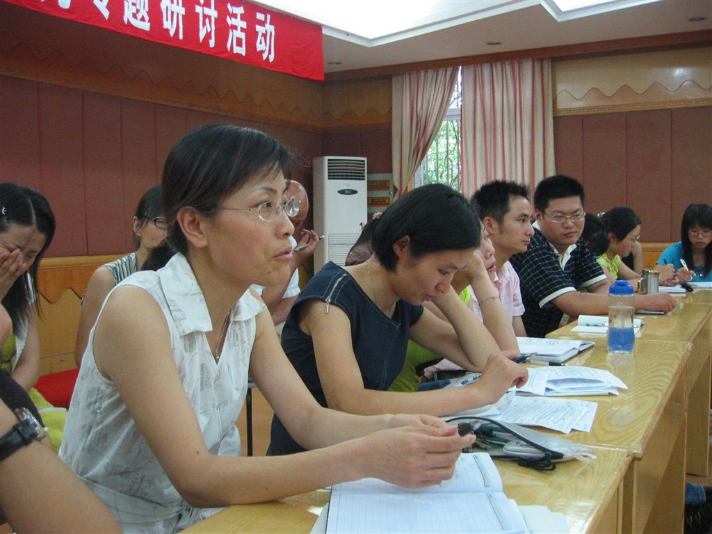 潘亚清老师,一位帅气的男教师。说他“帅”,并不只局限在他的外表,更缘于他的课堂所呈现出的一份“大气”。幽默的言语、开拓的视野、平易的教风,使他赢得了学生的爱戴。正是这份师生间的无拘无束,使得他的课堂更加开放而灵动。他还是一位有才气的教师。了解他的老师都知道,潘老师不仅专业素质高,在其他爱好,如画画、书法等方面也颇有造诣,在电脑使用上也可谓自学成材,而这些特长却也很好地在工作中发挥了作用。每当大家遇到难题都会不自觉地请到他,他也总是热心地为大家排忧解难:黑板上风格不拘的艺术字,活动中精致的PPT制作,甚至电脑出现了故障,大家也会请他来修理……勤奋地学习、丰富的教学经验、出众的智慧、强烈的责任意识,又为他担任课程部副部长提供了“底气”。尽管综合组里小学科众多,但潘老师却管理得井井有条,并用他的智慧为每一学科组出谋划策。他不是音乐、美术、体育老师,但坐进他们的课堂,总能一针见血地指出需要改进的地方。在他的带领下,综合组的活动搞得有声有色:开学初由美术组承担的“走进异域文化”活动,引发了教学策略的有效性研讨;“新基础”研讨活动中,科学组师徒二人齐上阵,潘老师不仅要设计自己的教学, 还手把手地教授徒弟,上课、说课,甚至细致地关注到徒弟的情绪变化;音乐组老师在各项竞赛中都取得了骄人的成绩……潘老师也在管理中逐渐成长起来。