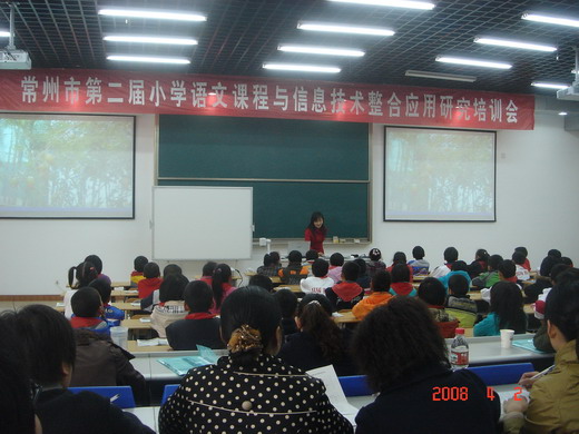 本次培训会共展示了小学语文课程与信息技术整合应用课8节,分别由各辖市(区)电教中心(馆)和局属小学选送。8节课的执教老师均获得常州市首届小学语文课程与信息技术整合应用案例评比一等奖,上课的内容包括小学各个年级,涉及阅读、作文、综合性学习等多种课型。我校