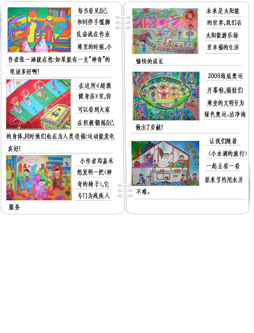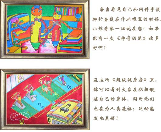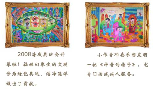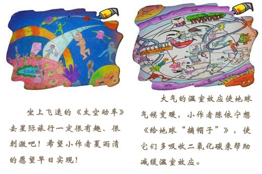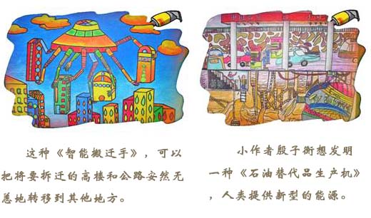 世界,特别是未来的世界,对于少年儿童来说,既是陌生的,又是新奇的,在孩子们的眼中,在他们的思维中充满了五彩缤纷的幻想。为了参加常州市第十九届青少年科技创新大赛科学幻想绘画比赛,我校积极组织学生开展“童心画未来”的活动,美术组的老师经过悉心指导,层层选拔,共送出15幅绘画作品参加此次比赛。孩子们的幻想涉及从天到地,从陆地到海洋,从人类生活、环境变迁、城市建设到动植物演变与发展等方面,二实小学生充分发挥自己的想像,画出心中美好的愿望,用童心描绘出祖国新的蓝图。