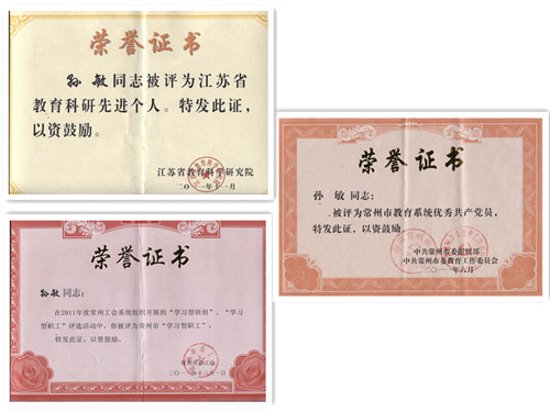 4.于2011.1被常州市教育局评为“常州市2007-2010年教科研先进个人”