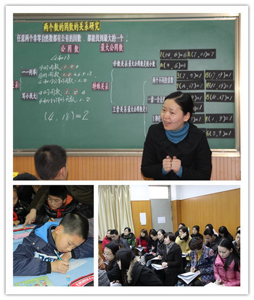 课程部马美南部长现场进行了“公因数和最大公因数”的整体结构教学,展示了二实小人对健美课堂的理解和追求。全课张驰有度,收放自如,走出了概念教学中普遍存在的演绎概念、机械记忆、反复操练的模式。评课中,老师们都觉得受益匪浅,