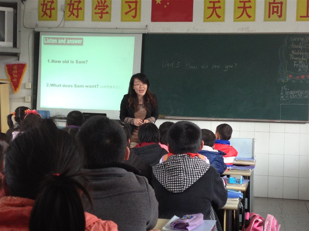 王静老师、孙妍老师分别就三年级《Unit5 How old are you?》第一、第二课时进行了课堂教学展示。王老师的课思路清晰,环环相扣,扎实有效,通过歌曲引入印第安人,整节课以印第安小朋友为主线,在整体情镜中进行了词汇句型的教学,整节课生动有趣。孩子响亮的回答、动听的语音语调给全体教研组的老师带来了惊喜。孙老师以Story Time的课文故事为主线,课堂思维含量高,注重学生提问和发散性思维的培养。多媒体课件、录音机、玩具等多种教学媒体的充分利用;游戏、表演等多种方式的教学手段提高了孩子的学习兴趣,孩子们在上台表演的同时融入自己的生活体验,产生新的思维火花。两节课就如同盛开的桃花与樱花,给人视觉与思维的双重美的享受!