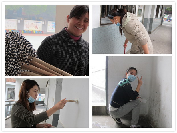 沙皮纸发出的沙沙声,皮水管喷出的哗哗声,还有小铲子刮出的吱吱声,周六的校园出奇的热闹,书记带领所有党员开始了一天的义务劳动;夜晚的翠小灯火通明,校长带着中层持续着白天尚未结束的工作。所有墙面上的污渍必须清除,所有瓷砖上的污垢必须消灭,所有走廊上的尘迹必须清理,所有的图书必须分类排放……哪管灰尘满天飞,只待环境渐呈亮;哪管时间已深夜,只盼旧貌换新颜。因为,他们是集团人,怀揣着一份真挚的情。