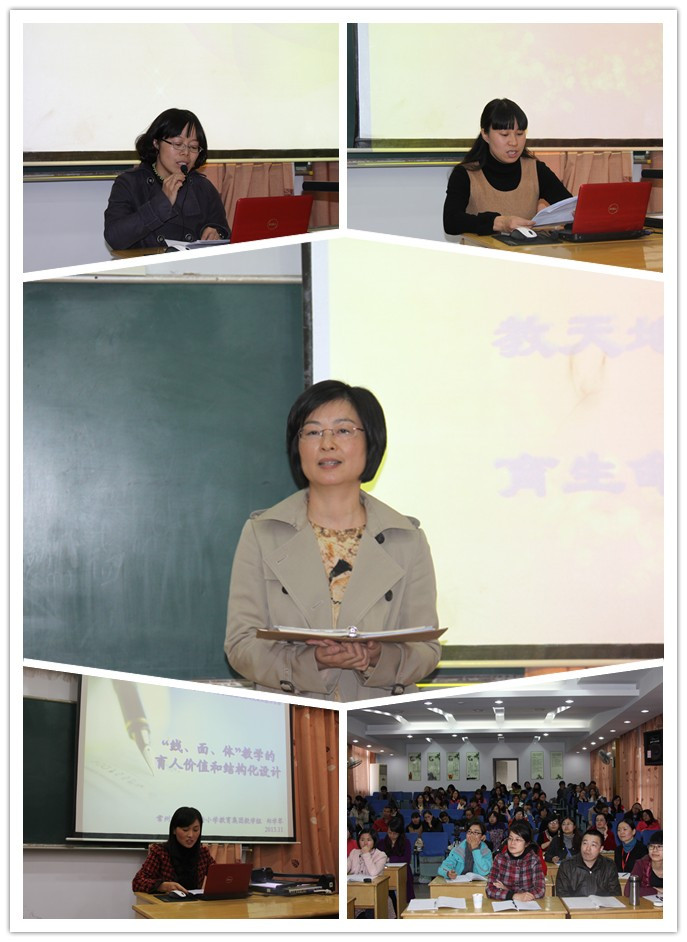 此次天宁区小学数学教学研究,采用“专题引领式团队研究”的方式,按照“确定专题——校自主研究——积累研究资源——专题集中研讨——辐射研究成果”的流程,下移研究重心,由各校自主研究,教研室组织专题统领下进行学校之间的问题切磋和成果交流,促使研究向纵深发展。活动的第二板块,三所学校的教研组代表分别进行了研究成果交流,就“如何通过想象帮助学生理解几何概念”进行了专题汇报。青龙实验小学教都华叶老师剖析了动手操作、自主探究对发展空间观念的作用;朝阳桥小学张文明老师对小学数学几何图形教学策略谈了许多思考;第二实验小学教育集团郑学琴老师解读了教材,挖掘了“线、面、体”教学的育人价值并给出了长程结构化的设计。