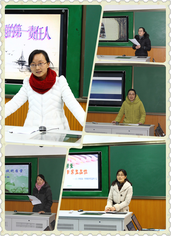 在故事中品味幸福。分管教学的孙敏副校长精心制作的数字故事《幸福走过》,带领与会教师一起回顾了本学期在教学研究之路上的所思所行。基于问题的计划引领、纲要统领、循环跟进、调研保障和师生成长,彰显了在“向科学要质量,向简约要效率”思想指导下,学校课程教学领域“立人、立序、立品”的价值追求。