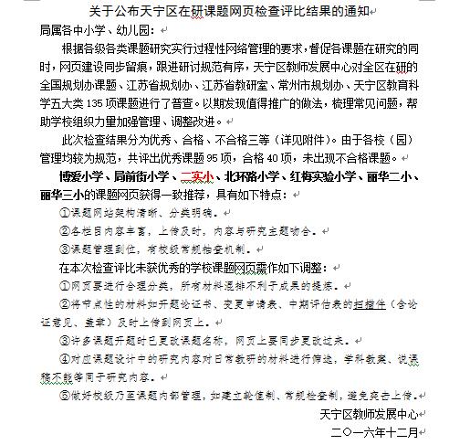 在研课题在区网页检查评比获“优秀”
