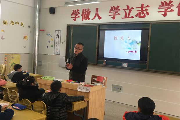 捏泥人是我国传统民间文化,而如今作为我国珍贵的非物质文化遗产也越来越受到重视。董梦瑶的爷爷是专业的捏泥人大师,董梦瑶的爸爸受其父亲的影响从小便对其颇感兴趣。开始上课了,董梦瑶的爸爸先通过孔明的故事把我国这一文化向同学们娓娓道来,同学们看着图片一下子就被这个艺术吸引住了。
