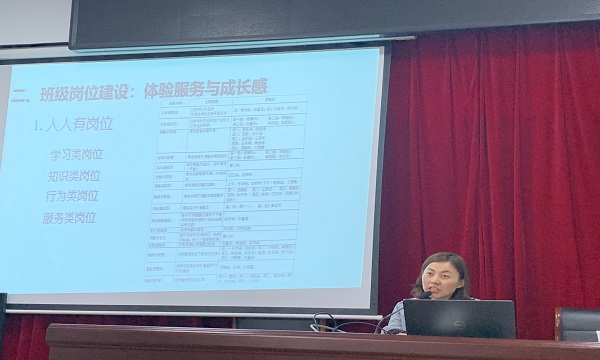 程老师动情地讲述了班名“常州地铁星星号”的来历,源于常州地铁齐心向前、乐于奉献、勇于拼搏的地铁精神的感染;分享了班级岗位建设的理念:丰富学生的角色体验,强化学生的责任意识,培养学生积极向上的情感,确立学生在班级管理中的主人翁地位,只要学生以积极的姿态主动参与就值得拥有岗位;提醒年轻班主任们班级常规的建设,并非压制学生的个性发展,更不是抑制学生的思维,而是规范教与学的秩序,保证良好的班级纪律,形成积极向上的班级学习氛围;特别提醒大家班级制度实施中需要严有格爱有度并行;动情地分享了班级活动团从无到有、从有到优的建设过程。程老师毫无保留地提供了自己工作中的“金点子”“小妙招”,给了年轻班主任们不少的启发。在她的班级里,“生命自觉”已然融入到班级活动的建设中来,学生、家长、老师一起实现成长意义上的节点跨越。