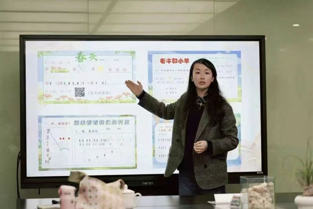 接着,工作室领衔人李静老师围绕小学低段唱游教学,结合曾经执教过的课例,带来了《具身畅游·沉浸歌唱——小学低段唱游教学的策略缕析》专题讲座。李老师解释了何为唱游以及唱游的发展,从缘起、初探、试炼、进阶等方面结合具体的课例娓娓道来,每字每句都浸润着敏锐的思考与对教学研究的执着。
