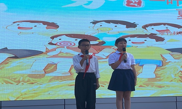 金秋时节,二实小翠竹校区“一叶知秋意 夏尽待丰收”主题升旗仪式由五(5)中队承办,为全校师生呈现了一场别开生面且意义深刻的活动。主持人戴婧涵、徐一潇同学以自信大方的姿态登上舞台,为升旗仪式拉开了帷幕。