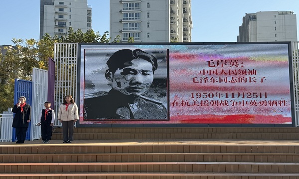 在本次新闻思政德育课上,党员教师宣馨蕾通过视频《英雄回家》,带领全体师生共同回顾了抗美援朝战争中英勇牺牲的烈士归葬故里的庄严时刻。