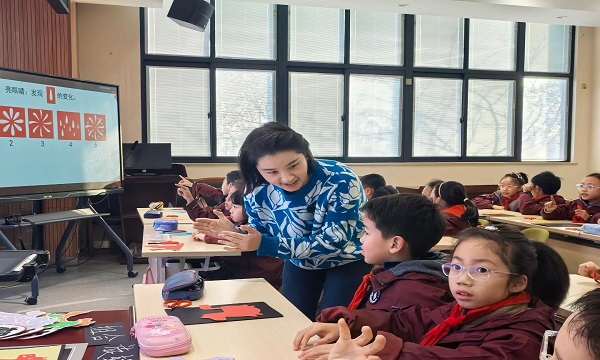常州市局前街小学杨茵雯老师执教《剪个骐骥过大年》,以2026马年新春为契机,通过“剪纸知多少”抽签答题、马年话吉祥等趣味互动,迅速点燃学生的学习热情。骐骥,即骏马、千里马,杨老师先引导学生对比欣赏剪纸作品,梳理骏马外形的夸张表现手法与纹样设计的创意思路;再聚焦折剪、抠剪、锯齿纹剪法等核心技法,进行细致示范与耐心指导,将抽象的剪纸艺术转化为直观可感的实践操作,让学生在动手实践中感受传统非遗的魅力。