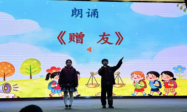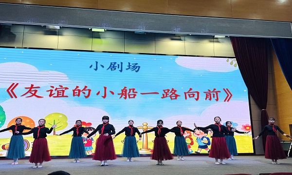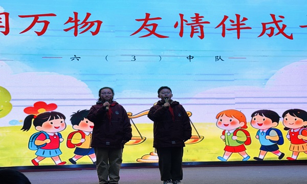 诗意朗诵与校园剧场点亮仪式温情。六(3)中队同学带来朱自清《赠友》的朗诵,以诗意韵律传递坚守理想、珍视友情的力量。校园小剧场《友谊的小船一路向前》生动演绎学生交往故事,将鲜活场景融入优美舞蹈,诠释包容、互助、友善的友谊真谛,让德育教育润物无声、入脑入心。