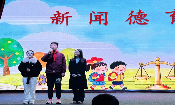 新闻德育课环节,党团员教师与少先队员同台对话,紧扣时代热点,将家国情怀与校园友情相融。全体师生学习习近平总书记关于国际友好的重要讲话,阐释 “友好为底色、团结为底气” 的深刻内涵。少先队员王意淼分享六年同窗情谊,讲述课间互助、赛场鼓劲、包容相伴的温暖瞬间,承诺将友善种子传递下去。团员教师汪云琪寄语少年,倡导以友爱为帆、互助为桨,在追梦路上彼此成就。党员教师程美琴寄语学子,引导大家从同窗之谊悟家国大爱,做心中有爱、肩上有责的新时代好少年。